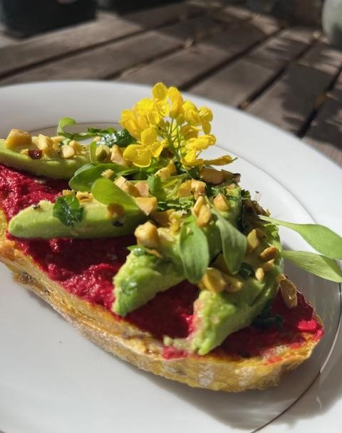 Shawnda here with Platypus Wine Tours sharing a beloved California recipe with a twist, avocado toast. The addition of earthy, roasted beet hummus along with the truffle salt makes for a rich, velvety culmination. I added micro-greens for a slight bitterness and wild-mustard flower which is lightly peppery, for balance. This is stunning on the plate with its contrasting colors. The purple, green and gold are near-Mardi Gras level pow.